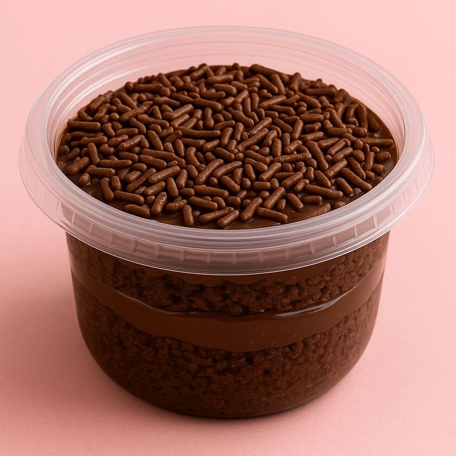 Massa de chocolate fofinha e úmida, preparada com ingredientes selecionados. Cobertura de brigadeiro cremoso e irresistível, finalizada com granulados macios. O sabor que conforta a alma!