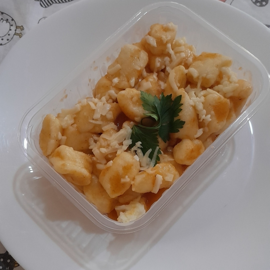 Nhoque de Batata Tradicional ao Sugo Deliciosos nhoques de batata macios e fofinhos, servidos com nosso molho sugo caseiro feito de tomates frescos, alho e cheiro verde e cebola. Um clássico reconfortante que derrete na boca! Finalize com um toque de queijo. Perfeito para um almoço ou jantar delicioso.