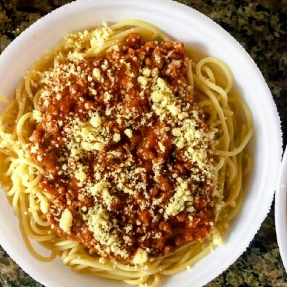 Delicioso macarrão à bolonhesa, com molho de carne moída e especiarias, perfeito para qualquer hora do dia.