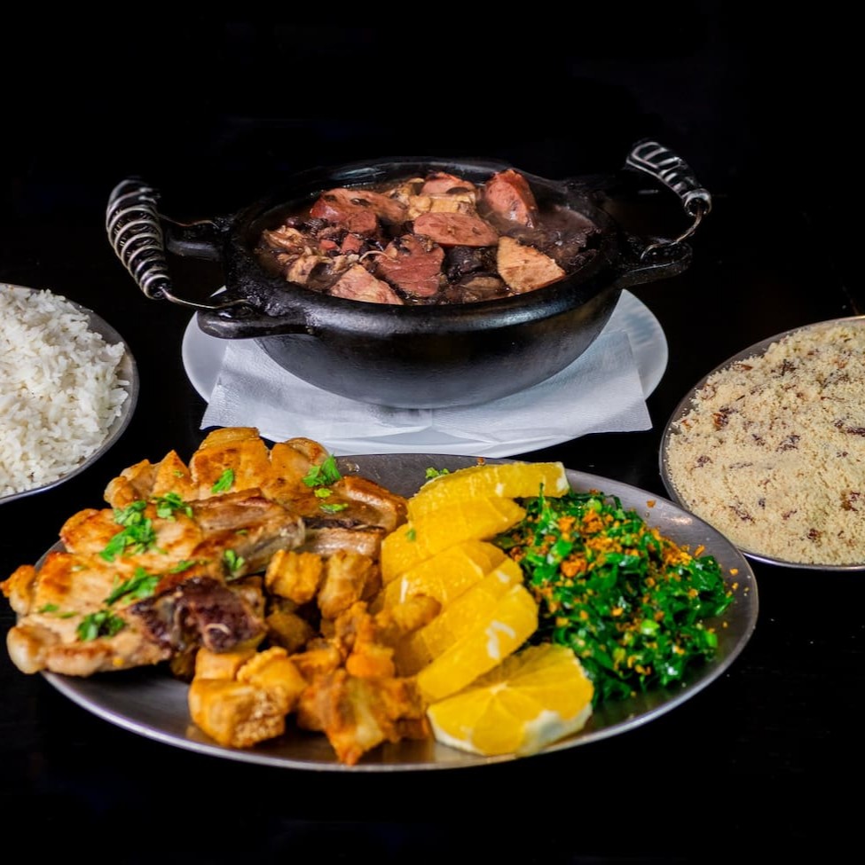 A Feijoada p/2 pessoas é uma tradicional e suculenta feijoada, pensada especialmente para duas pessoas. Nesta delícia, o sabor intenso da feijoada é harmoniosamente complementado por um arroz bem soltinho. Além disso, o prato vem com um torresmo crocante e irresistível, uma couve refogada ao ponto certo e uma farofa de bacon deliciosamente temperada. Tudo meticulosamente preparado para enriquecer