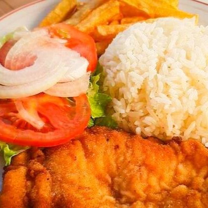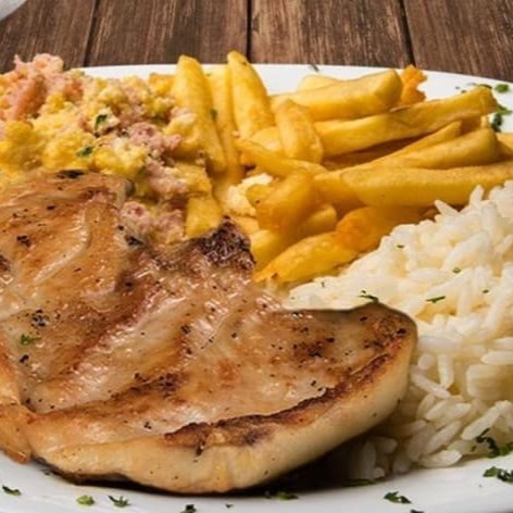 Acompanha: Arroz branco e Batata fritas (acompanha feijão)