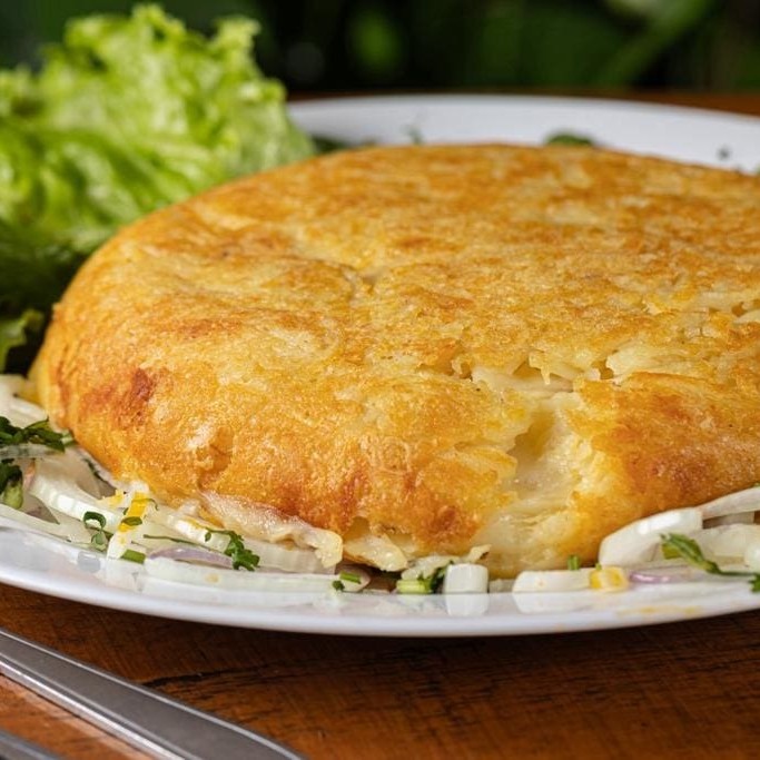 Delicioso Rostie Bacalhau, um prato da categoria Rostie. Um deleite gastronômico meticulosamente preparado com bacalhau de qualidade superior, que proporciona uma textura única e um sabor inigualável a cada mordida. Este prato é uma obra-prima culinária que exalta o sabor autêntico do bacalhau, elevado à perfeição pelo nosso experiente chef. Os sabores ricos e intensos deste Rostie Bacalhau garant