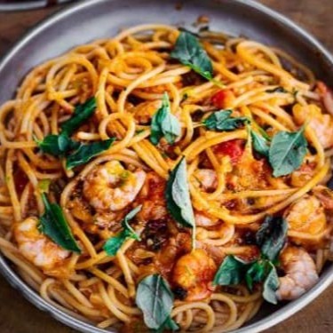 Desfrute do nosso Espaguetti ao Molho de Camarão. Este prato é uma combinação perfeita de espaguetti, envolvido em um molho cremoso à base de camarões frescos e selecionados. O sabor intensamente marinho dos camarões se funde harmoniosamente ao molho, criando uma experiência gastronômica inesquecível. Uma refeição deliciosa e sofisticada que vai fazer você se sentir em uma autêntica trattoria ital