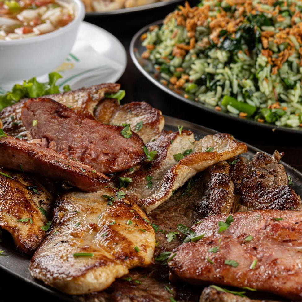 Este prato esplêndido, cuidadosamente preparado, oferece uma experiência culinária incrível, com uma generosa seleção de carnes grelhadas ao ponto da perfeição. Acompanha três guarnições à sua escolha, disponíveis no nosso variado setor de guarnições, para complementar o sabor. Além disso, inclui um molho especial para acentuar ainda mais a delícia da carne. Um banquete irresistível para compartil