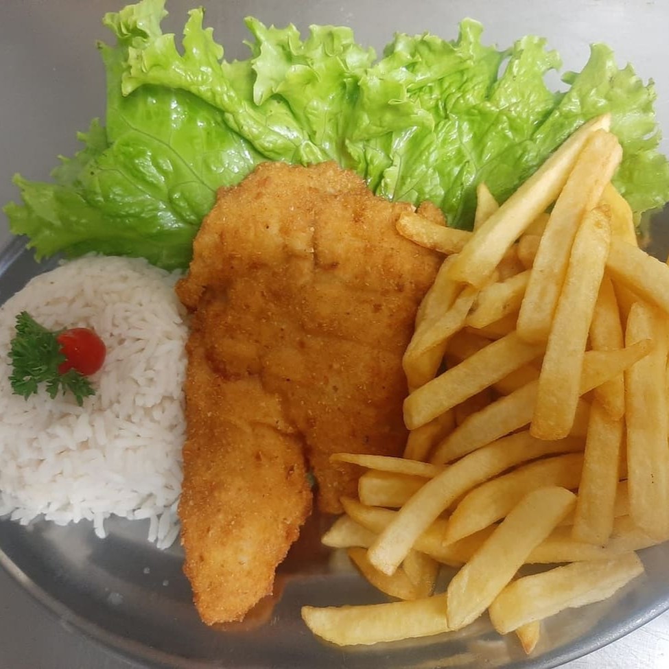 Delicie-se com nosso Filé de Peixe Grelhado. Preparado com maestria, o filé de peixe é grelhado à perfeição, conservando todo seu sabor e suculência. Acompanha um arroz branco impecavelmente soltinho e à sua escolha, um purê cremoso e aveludado ou batatas fritas crocantes e douradas. Este prato é uma combinação harmoniosa de sabores e texturas que promete deleitar o seu paladar.
