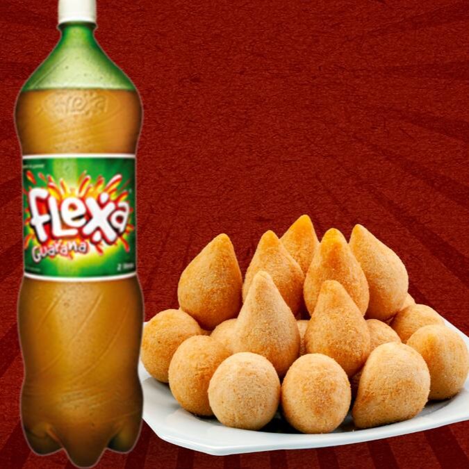 São 50 deliciosos salgados sequinhos e quentinhos (tamanho padrão de festa 15g) que fritamos na hora para sua experiencia ficar ainda melhor + 1 Flexa 2l