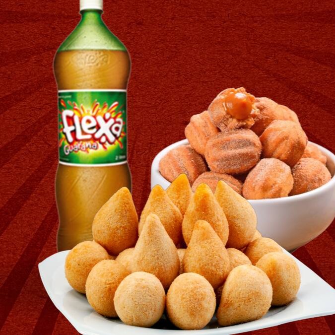 100 Salgadinhos + 25 Churros + 1 Flexa 2l