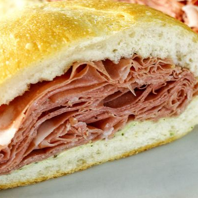 Pão, calabresa, queijo, presunto, alface e tomate