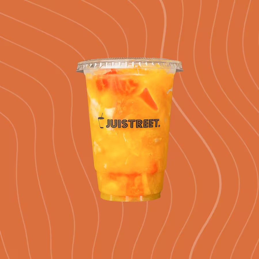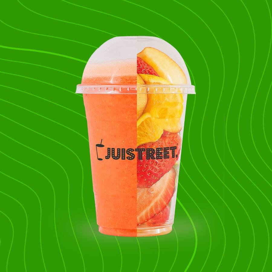 Doce, leve e surpreendentemente refrescante. Uma combinação de sabores única! (Ingredientes: Morango, laranja e maçã).