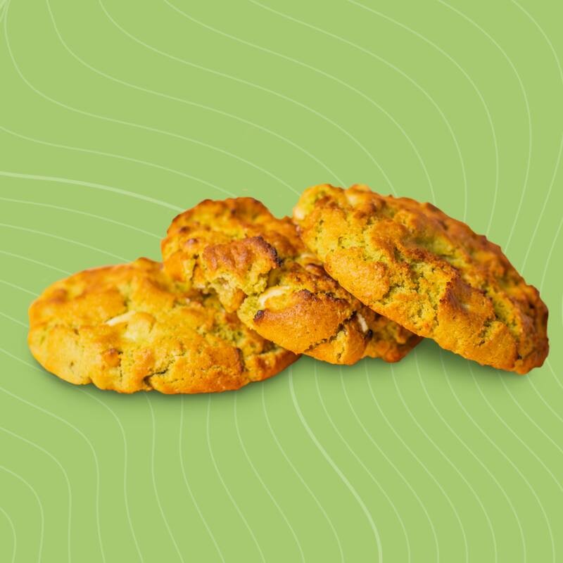 Uma combinação surpreendente de pedaços de pistache torrado em uma massa amanteigada, com gotas de chocolate branco. Uma experiência de sabor única e crocante.