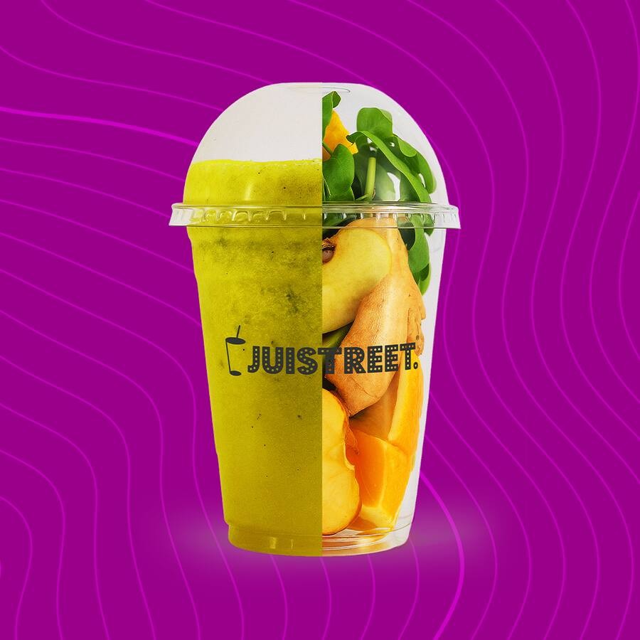 Uma poderosa mistura de folhas verdes e frutas, repleta de nutrientes para fortalecer sua imunidade. (Ingredientes: Espinafre, gengibre, laranja e maçã).