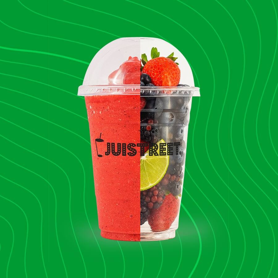 Explosão de sabor e antioxidantes! Um mix vibrante de frutas vermelhas selecionadas. (Ingredientes: Morango, amora, blueberry, iogurte de limão e maçã).