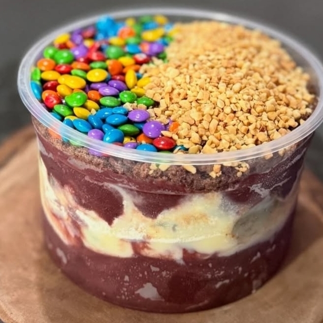 Sirva-se com até 5 Complementos, escolha seu sabor de Açaí e sua Calda