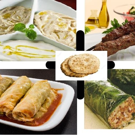 Combinado contendo 1 pasta árabe de 250g + 2 pães árabes grandes + 1 tabule + 1 charuto de folha de uva + 1 charuto de repolho + 250g de arroz com lentilha com cebola caramelizada + 2 kaftas grandes com cebola caramelizada.