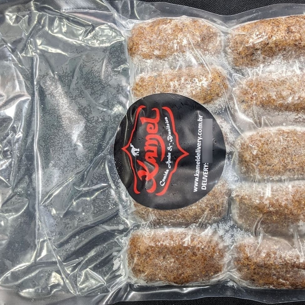 Kibes tradicionais de carne, em tamanho gourmet (cerca de 30 g cada) e congelados. Fritos e prontos para consumo. Embalagem com 10 unidades*. *Produto artesanal. Peso mínimo total: cerca de 300 g. Modo de Conservação: Conservar no freezer em temperatura de -12ºc ou mais frio, até a data de validade. Depois de descongelado, não congelar novamente. Após aberto, consumir o produto em até 48 horas, mantendo sob refrigeração (5ºc). Descongelamento: Retirar do freezer e levar ao refrigerador mantendo em temperatura de 5ºc por, no mínimo, 2 horas antes do consumo. Forno: Preaqueça o forno a 180ºc por 10 minutos. Leve os salgados ao forno pré-aquecido em assadeira, sem untar, por cerca de 10 a 12 minutos. Airfryer: Programar airfryer para 150ºc por, aproximadamente, 7 minutos. Depois de aquecido, consumir imediatamente.