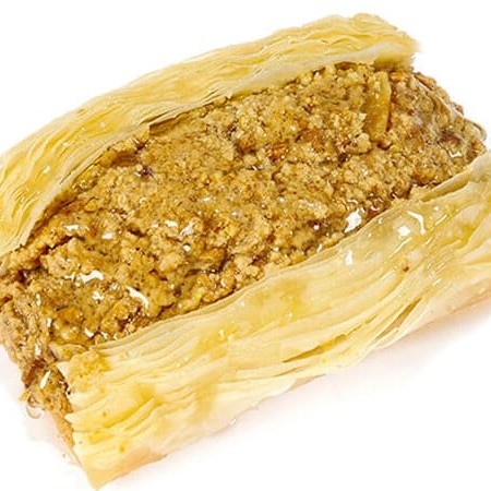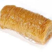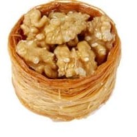 Macarrão árabe-kneff, nozes e calda.