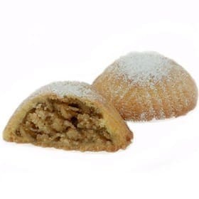 Massa de biscoito amanteigado com pistache e amêndoa, recheado com doce de tâmara.