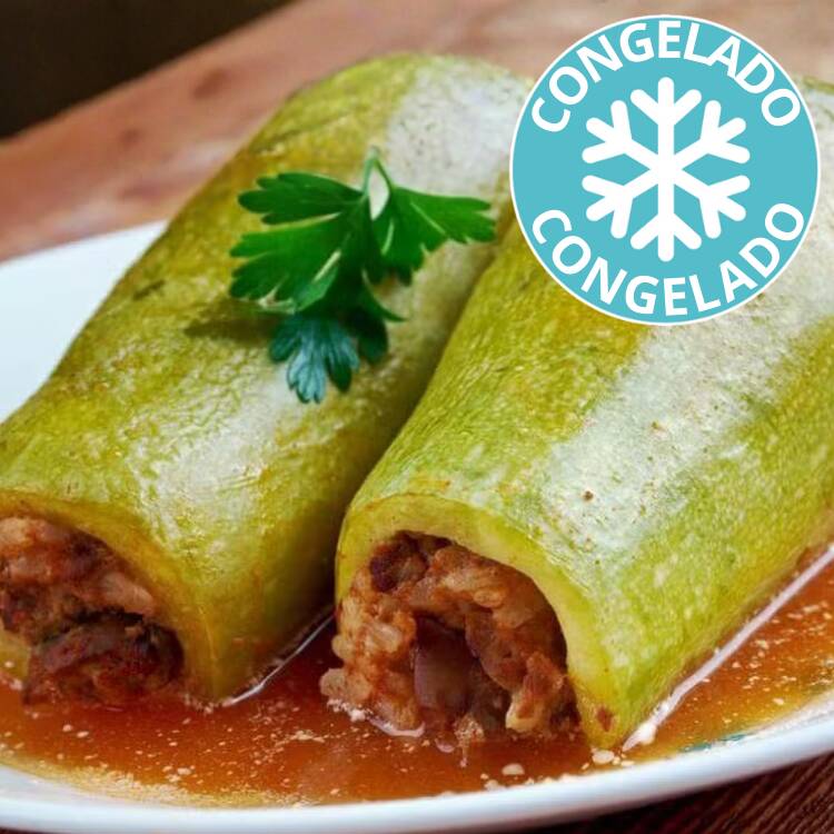 "** Atenção! Este é um produto congelado. O mesmo produto é vendido quente na seção ""Pratos Quentes"". ** Abobrinha recheada com arroz e carne moída, cozida no molho vermelho. Porção congelada com 2 abobrinhas recheadas, em embalagem própria para ser levada diretamente ao micro-ondas, garantindo a praticidade e preservação do sabor autêntico."