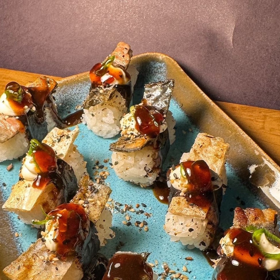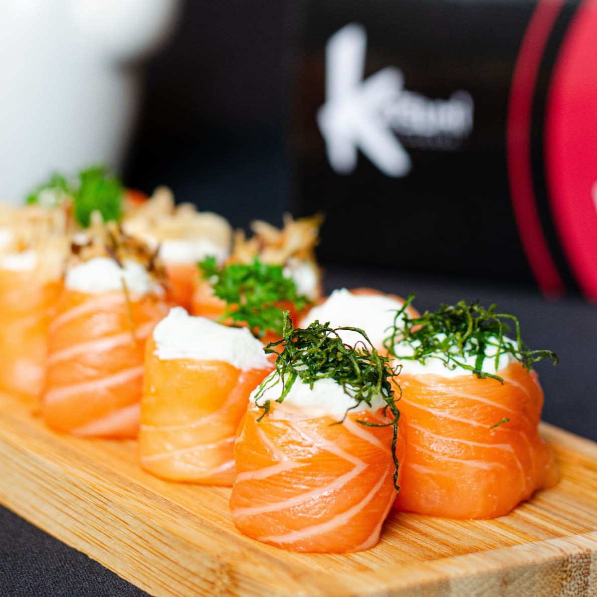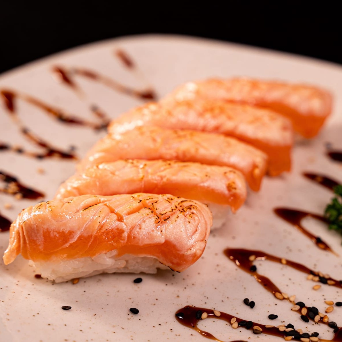 Delicioso sushi flambado no azeite com um toque especial e flor de sal.