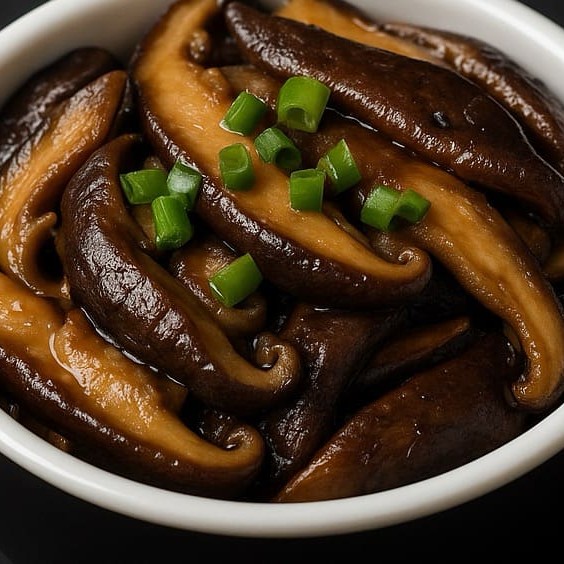 Cogumelos salteados na manteiga, alho e cebola. Temperado com molho shoyu light e especiarias orientais.
