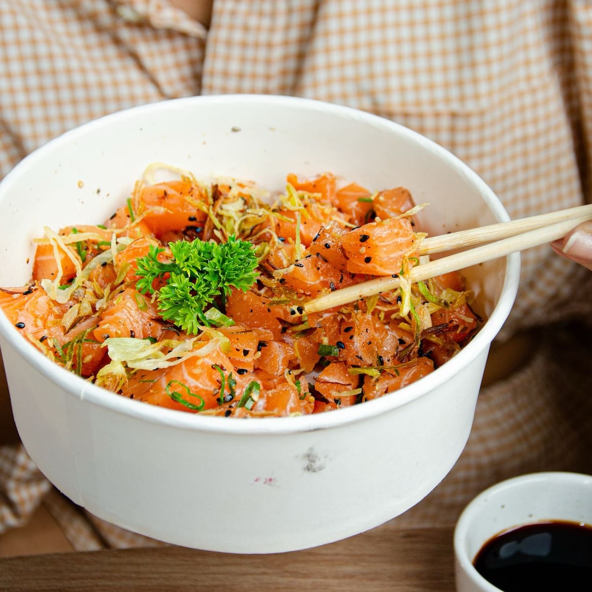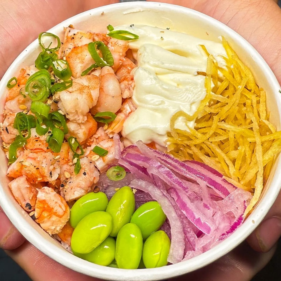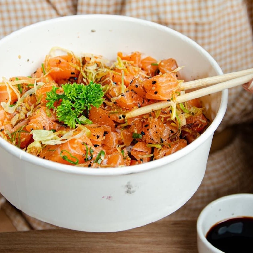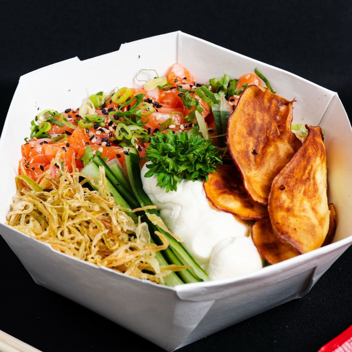 Prato de origem havaiana adaptado à culinária japonesa. Composto por arroz japonês, vegetais e pescados. 70g de arroz, 50g de proteína e 3 toppings.