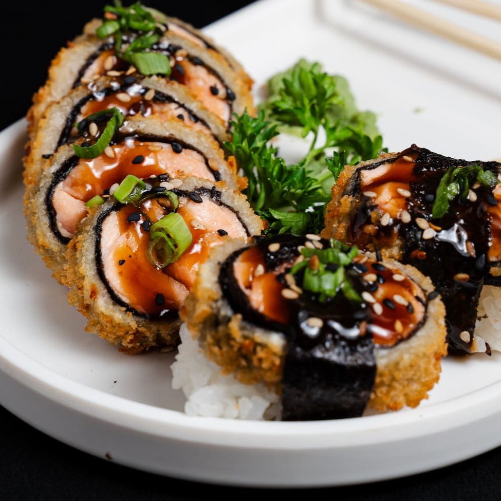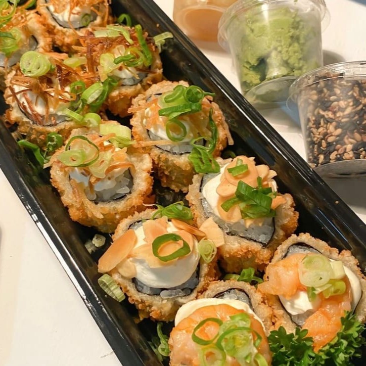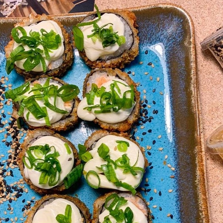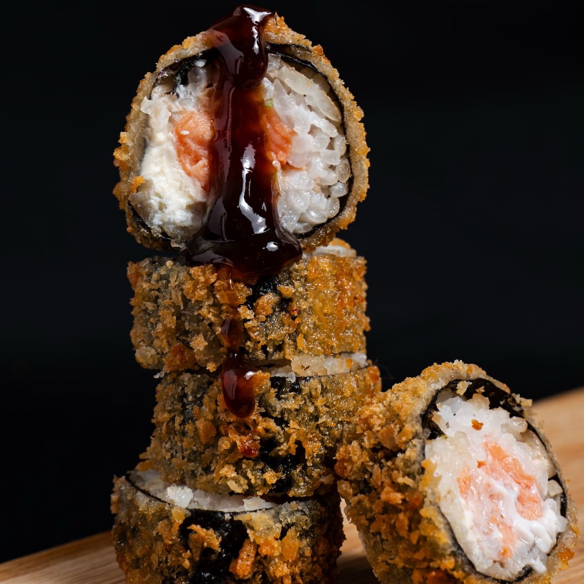 Makimono empanado em massa crocante e frito. Delicioso e quentinho!!