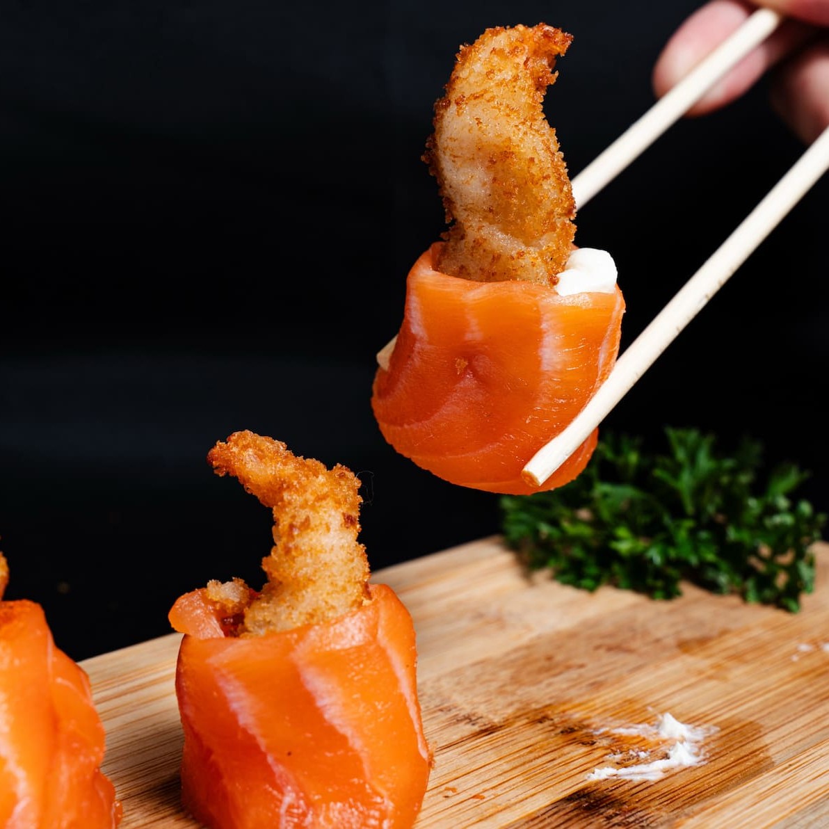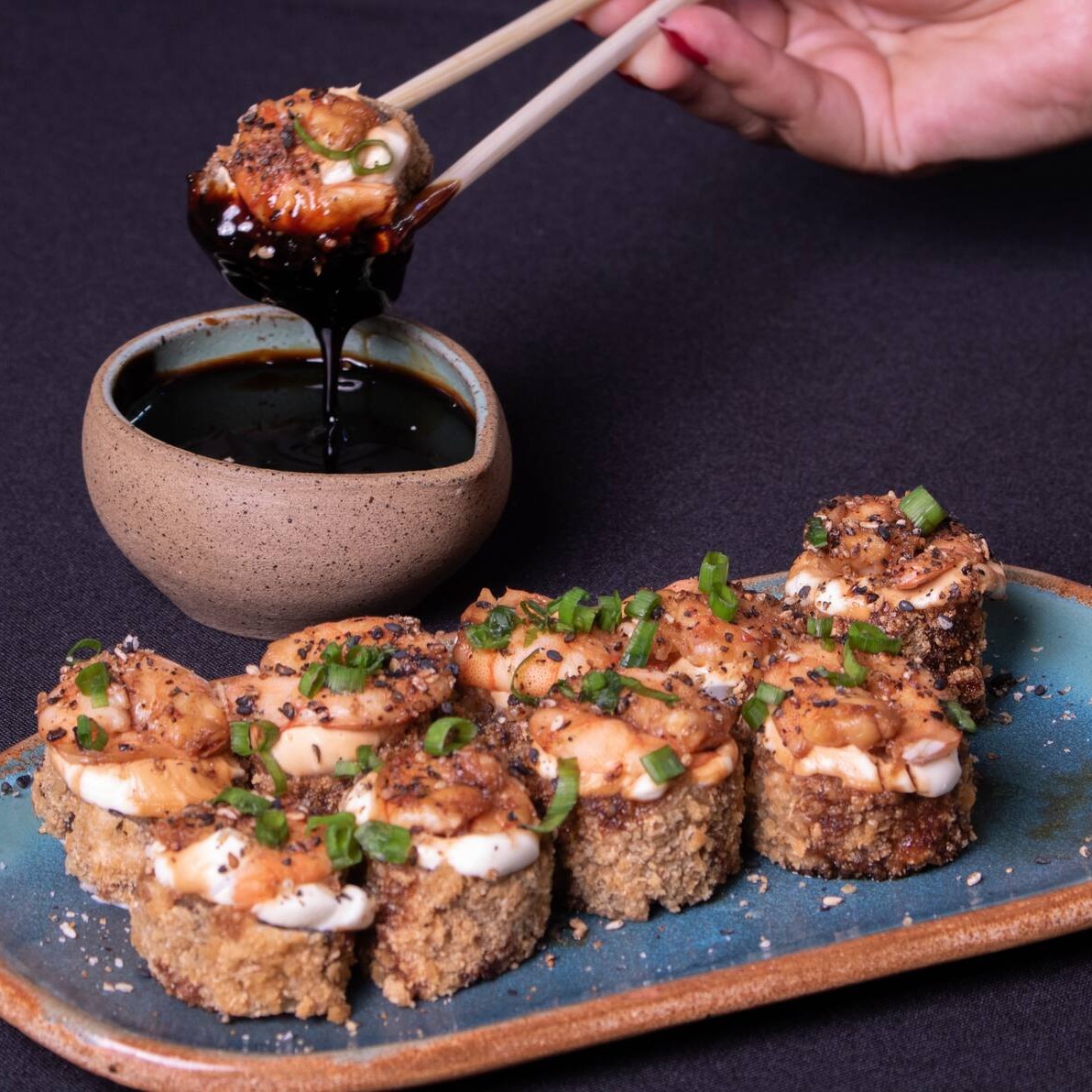 Três deliciosas peças com cream cheese e camarão crocante, envolto em uma fina fatia de salmão e ovas de massago. Você precisa viver essa experiência.