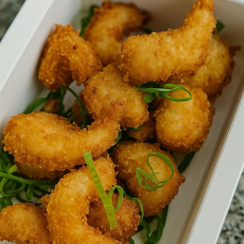 Camarão selecionado e empanado um a um. Tempero e sabor na medida certa. Você precisa experimentar!