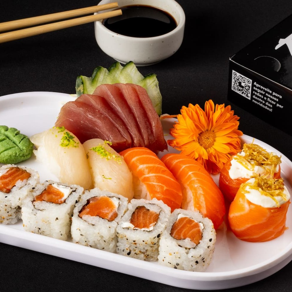 Nosso queridinho! Combinação deliciosa com os principais cortes da casa: sashimis, niguiris e hossomakis. Feito com ingredientes selecionados. Serve bem 1 pessoa com fome ou 2 em refeição leve.