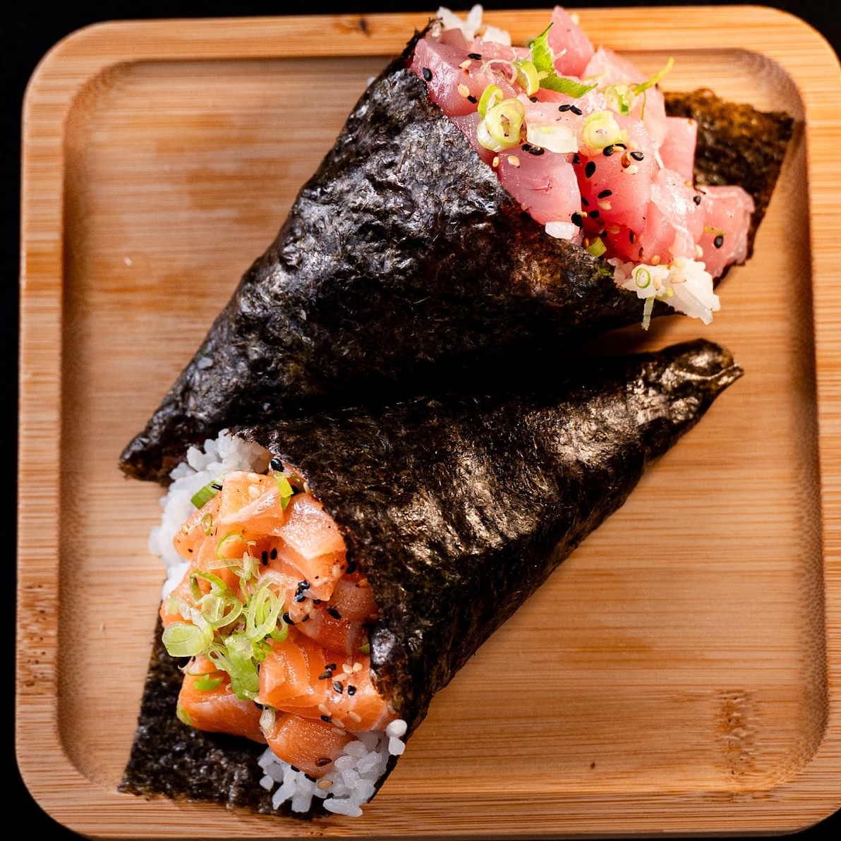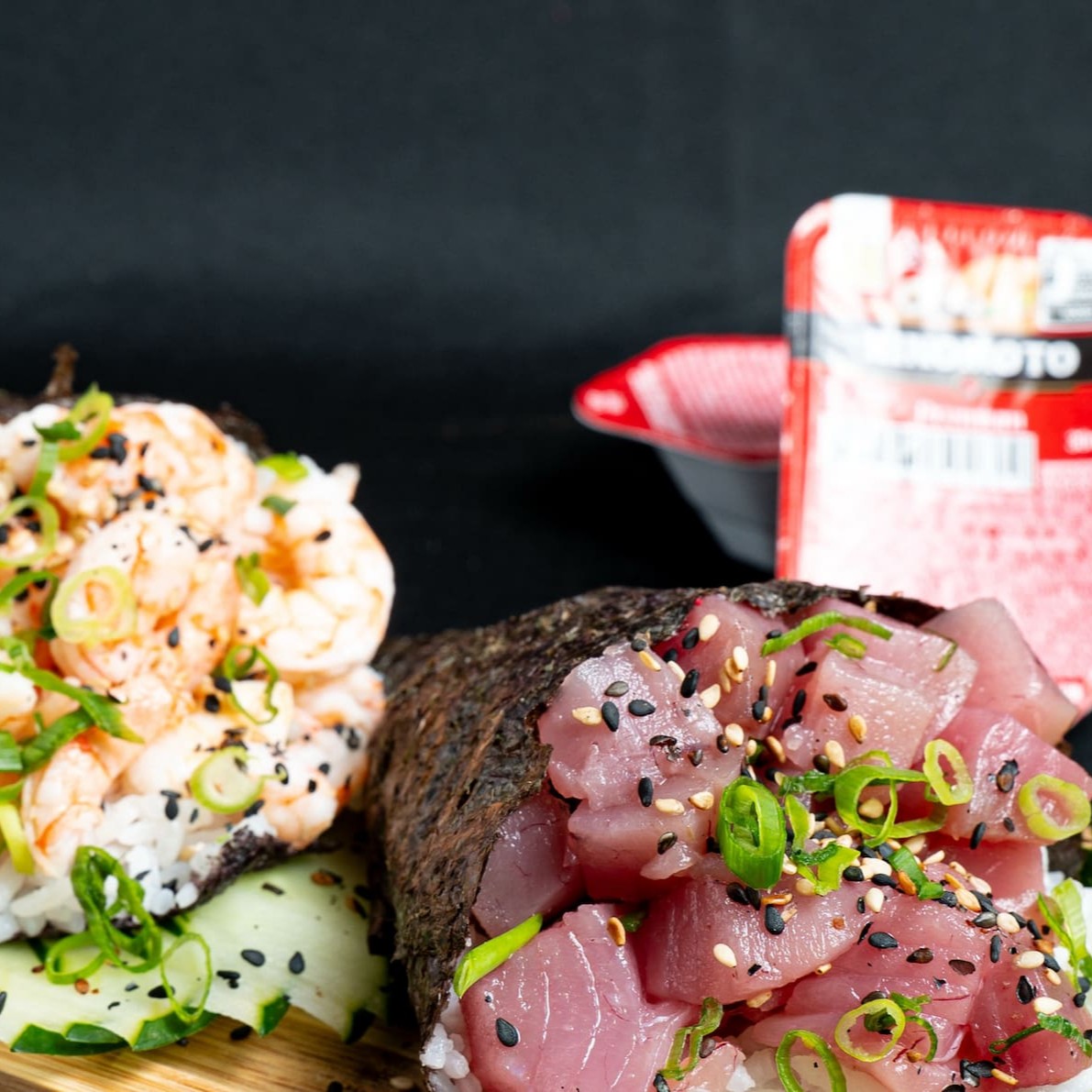 Bolinho de arroz japonês moldado à mão, recheado com pasta de atum e envolto em alga crocante. Uma combinação simples, saborosa e cheia de tradição, perfeita para um lanche rápido ou para acompanhar sua refeição.