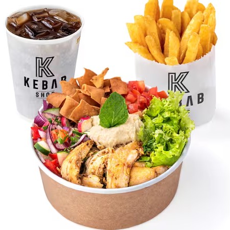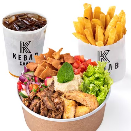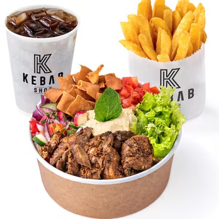 O Salad Bowl de Carne é a opção saudável e deliciosa para quem quer o melhor do Kebab de forma leve. Com cortes magros marinados por 24h em temperos especiais e assados lentamente, cada mordida é uma explosão de sabor. Combinado com o mix fresco de nossa salada, é a escolha ideal para um Dia leve, refrescante e cheio de sabor. O Combo inclui Batata Frita e Mate da Casa. Personalize trocando a batata ou o Mate por outra bebida, pagando a diferença. Comece escolhendo uma pasta - saboroso Homus ou cremoso Aioli. Acrescente ingredientes frescos: Alface, Tomate, Mix de Salada Fattouche (Pepino, Rabanete, Pimentão, Cebola Roxa, Salsinha, Hortelã, Molho Vinagrete e Torradas). Cada ingrediente foi selecionado para complementar e elevar o sabor da sua salada. Recomendamos escolher completo! Finalize com um de nossos molhos exclusivos: tahini, pimenta da casa ou alho da casa, para dar aquele toque final que faz toda a diferença.