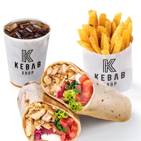 Opção leve e deliciosa: usamos peito, coxa e sobrecoxa de frango marinados por 24h em temperos especiais. Assado lentamente em espetos giratórios, o frango fica tenro e suculento. Cada mordida combina sabores vibrantes, acompanhada de nossos pães frescos e acompanhamentos. O Combo inclui Batata Frita e Mate da Casa. Personalize trocando a Batata por uma Porção ou o Mate por outra bebida, pagando a diferença. Comece escolhendo seu pão preferido para o Kebab, seja o tradicional Pão Árabe ou o Pão Folha. Adicione uma pasta para dar um toque especial - o saboroso Homus ou o cremoso Aioli. Acrescente os ingredientes frescos: Alface, Tomate, Picles de Cebola Roxa, Salsinha e Hortelã. Cada um desses ingredientes foi selecionado para complementar e elevar o sabor do seu Kebab, recomendamos que escolha completo! Finalize com um dos nossos molhos exclusivos - tahini, pimenta da casa ou alho da casa, para dar aquele toque final que faz toda a diferença.