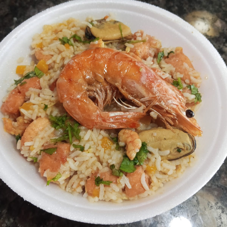 Arroz, camarão, mexilhão, salmão e temperos do chef (500 g)