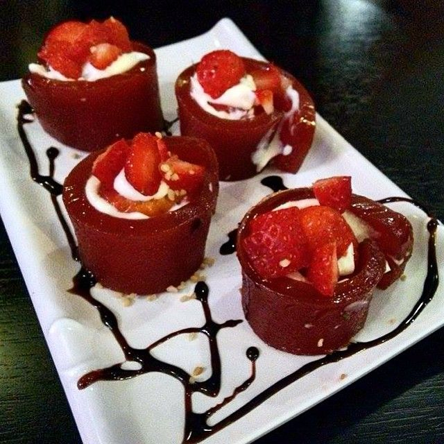 Arroz, salmão, cream cheese e geléia de maracujá (4 Pçs)