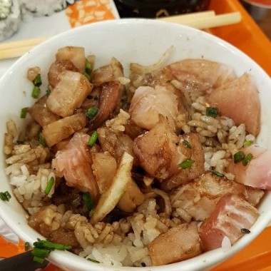 Arroz, atum, cebolinha e gergelim