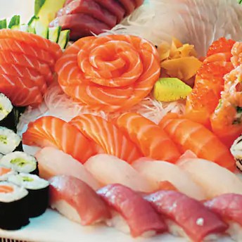 10 sashimis de salmão+10 sashimis de atum+10 sashimis de peixe branco+7 sushis de salmao+7 sushis de atum+ 5 sashimis de peixe branco+5 sushis de camarão+5 sushis de skin+5 sushis de kani+10 skin+8 salmao make+8 teka make+10 californias
