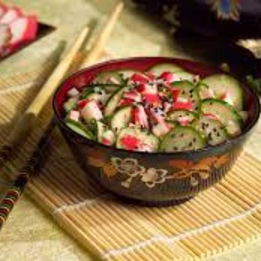 Salada de pepino com kani e gergelim ao vinagrete