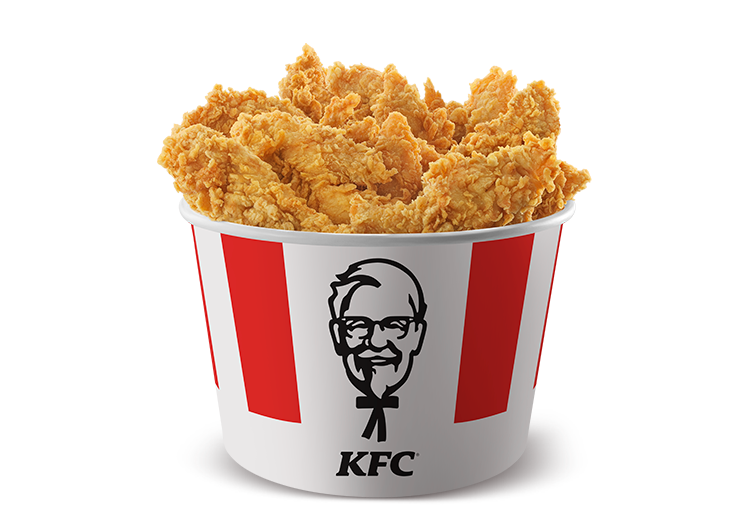 Deu aquela vontade de frango no meio do dia? Vem com o Balde Médio (5 Tiras) + 1 Molho do KFC + 1 Batata Grande!