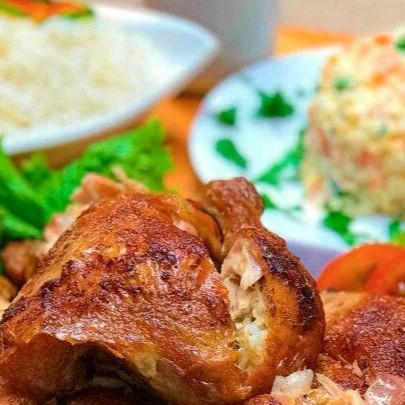 O nosso tradicional frango assado na brasa com acompanhamento e refrigerante coca cola de 1,5 litros (Serve 3 pessoas).