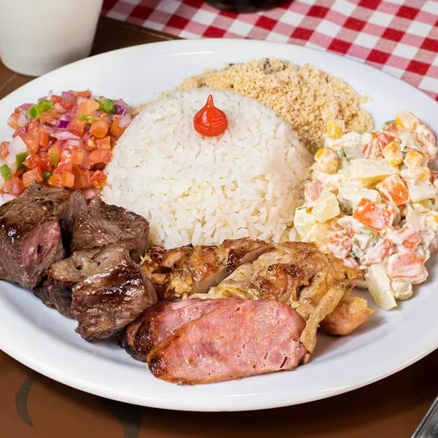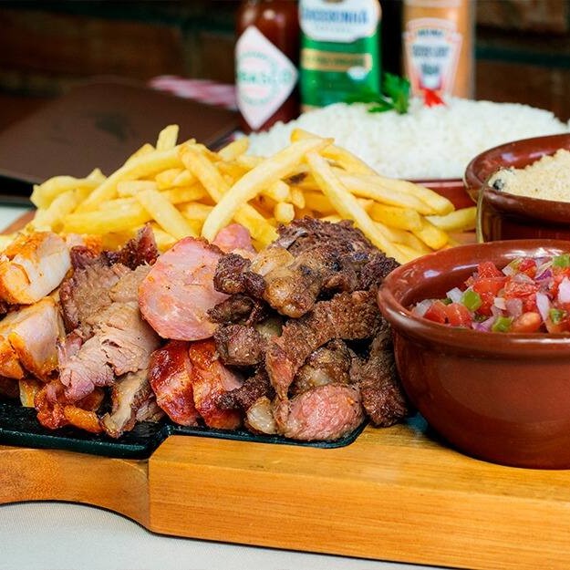 O clássico prato carioca, um saboroso churrasco na brasa, servido individualmente, com cortes selecionados: alcatra grill, linguiça de pernil e filé de coxa de frango bem temperado.