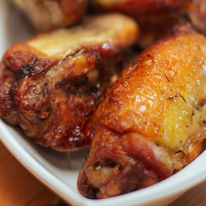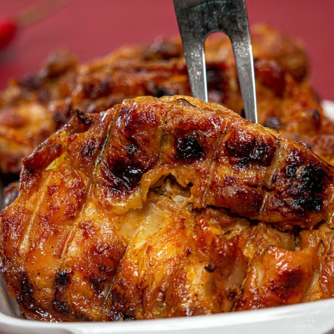 Porção de 500g de filé de coxa assada na brasa, preparada com o tempero especial da casa (aproximadamente 3 à 4 unidades).