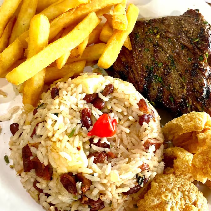 e farofa crocante. Acompanha uma opção à sua escolha.