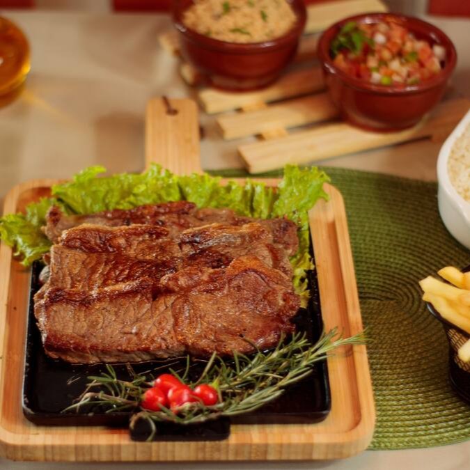 Suculenta fraldinha assada na brasa, no ponto certo, com aquele sabor defumado irresistível. Acompanha arroz, feijão e farofa. Escolha ainda um acompanhamento para completar sua experiência.