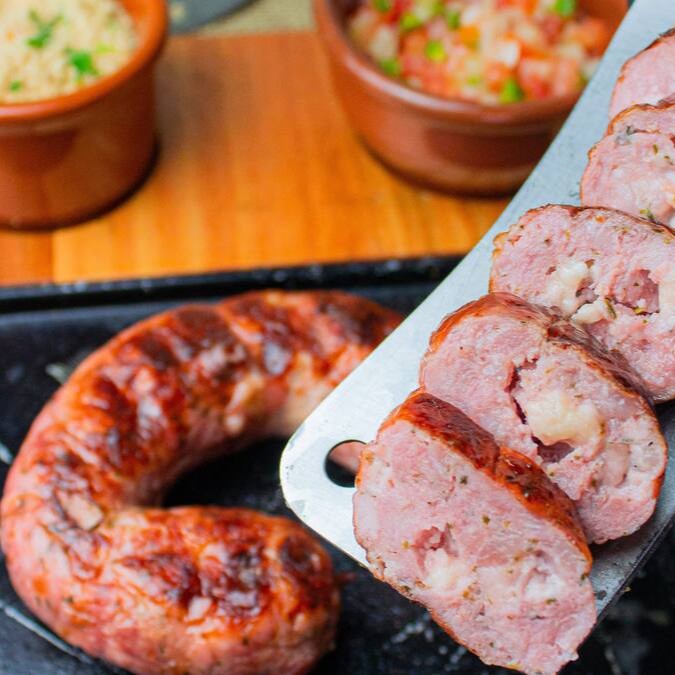 Nesse combo uma deliciosa linguiça de pernil recheado com queijo coalho, assada na brasa.
