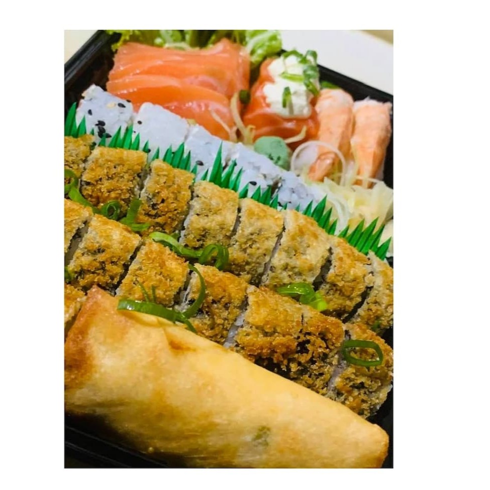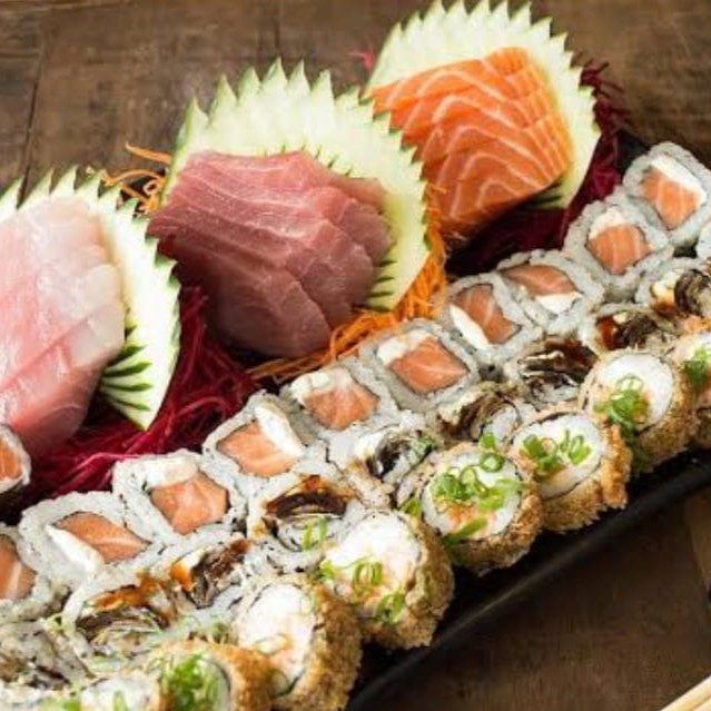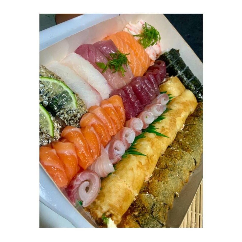 4 Sashimi Salmão, Atum, Peixe Branco, 2 Sushi Salmão, 2 Sushi Skin, 5 Filadélfia, 4suhsi Joe Poró, 10 Haruhot E 12 Hot Filadélfia.