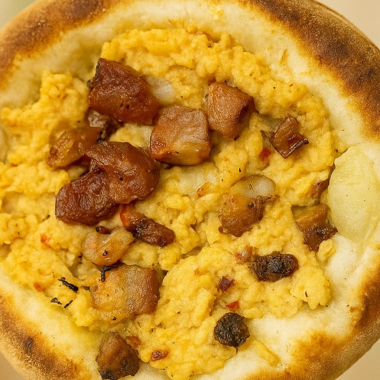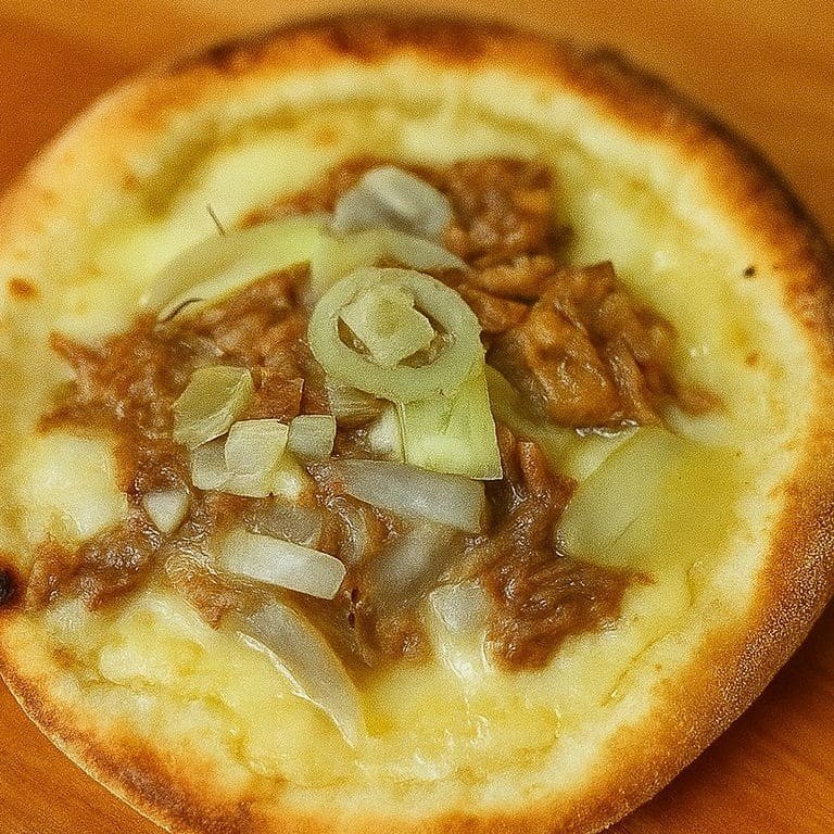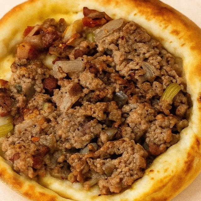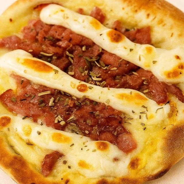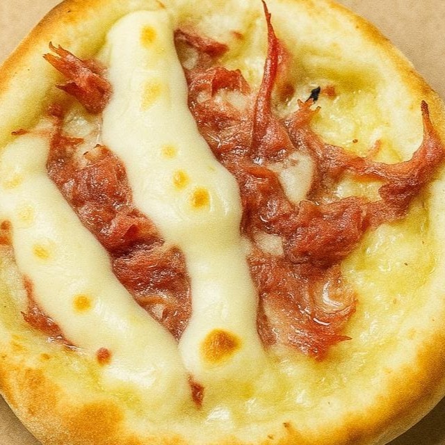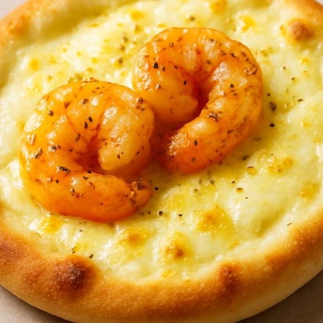 Deliciosa esfiha da casa, com mussarela e camarao selecionado.