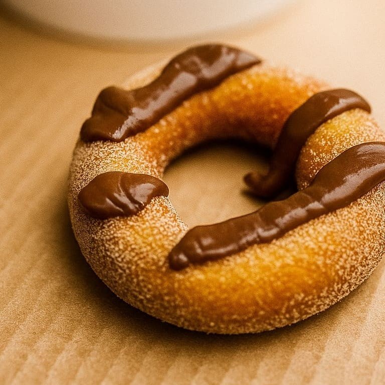 Delicioso Donuts com a qualidade Kidelicia que voce ja conhece, banhado com canela e acucar e aquele doce de leite cremoso.