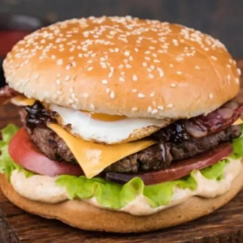 Pão selado na chapa, carne de hambúrguer suculenta, ovo, queijo, presunto, bacon, calabresa, alface, batata palha e molho especial