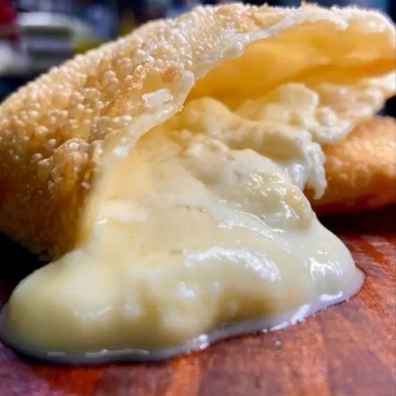 PASTEL DE QUEIJO MINAS BEM RECHEADO, TEMPERADO NO PONTO CERTO, ENVOLVIDO EM UMA MASSA CROCANTE E DOURADINHA!