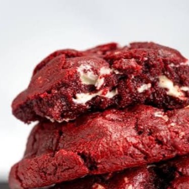 Cookie feito com massa red velvet, mix de gotinhas de chocolate e super recheado com nossa queridinha, Nutella!